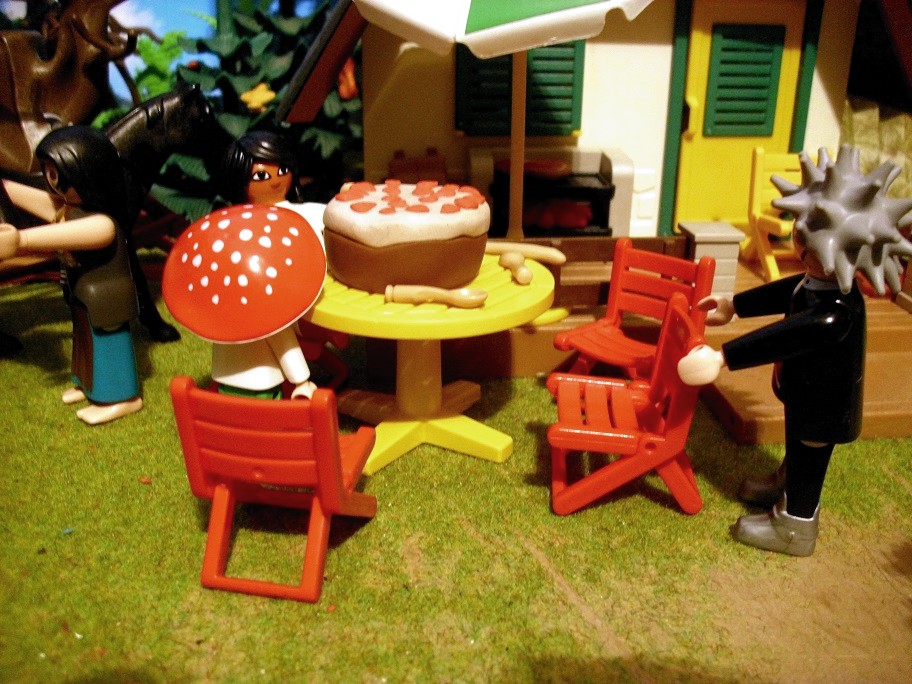 Pilzchen: „Aber lasst Polly auch was übrig.“