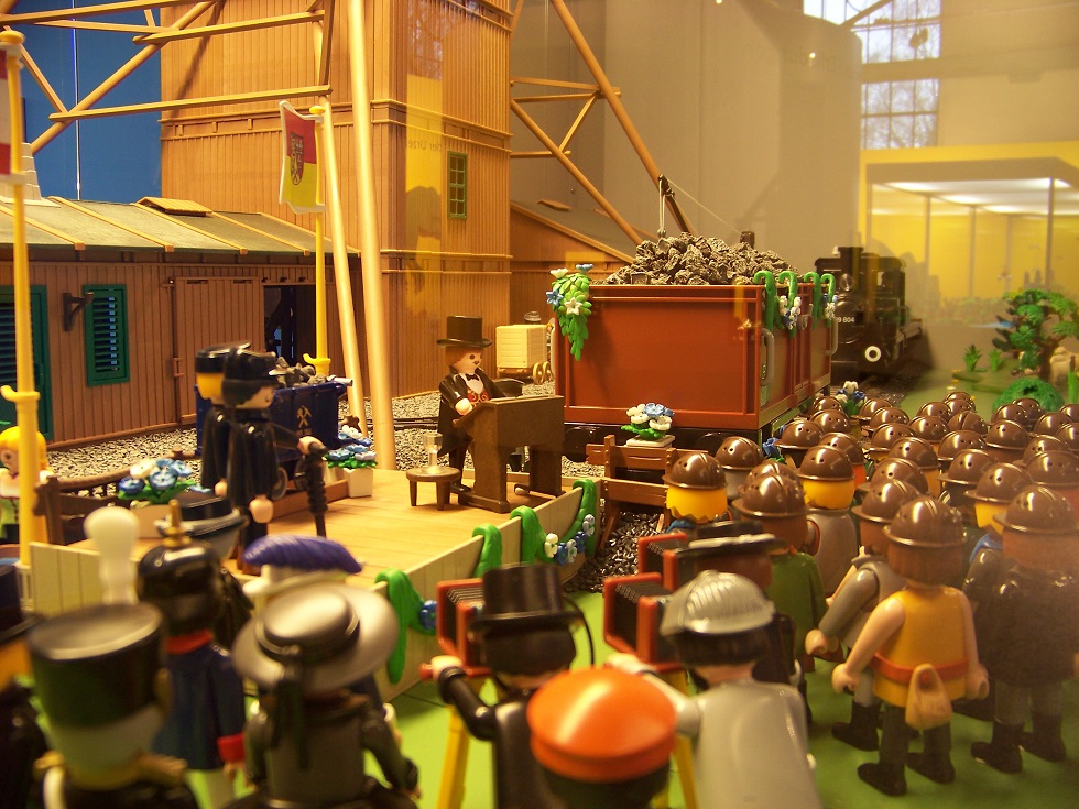 An der Vitrine, die extra für das Zechen-Diorama angefertigt worden ist,