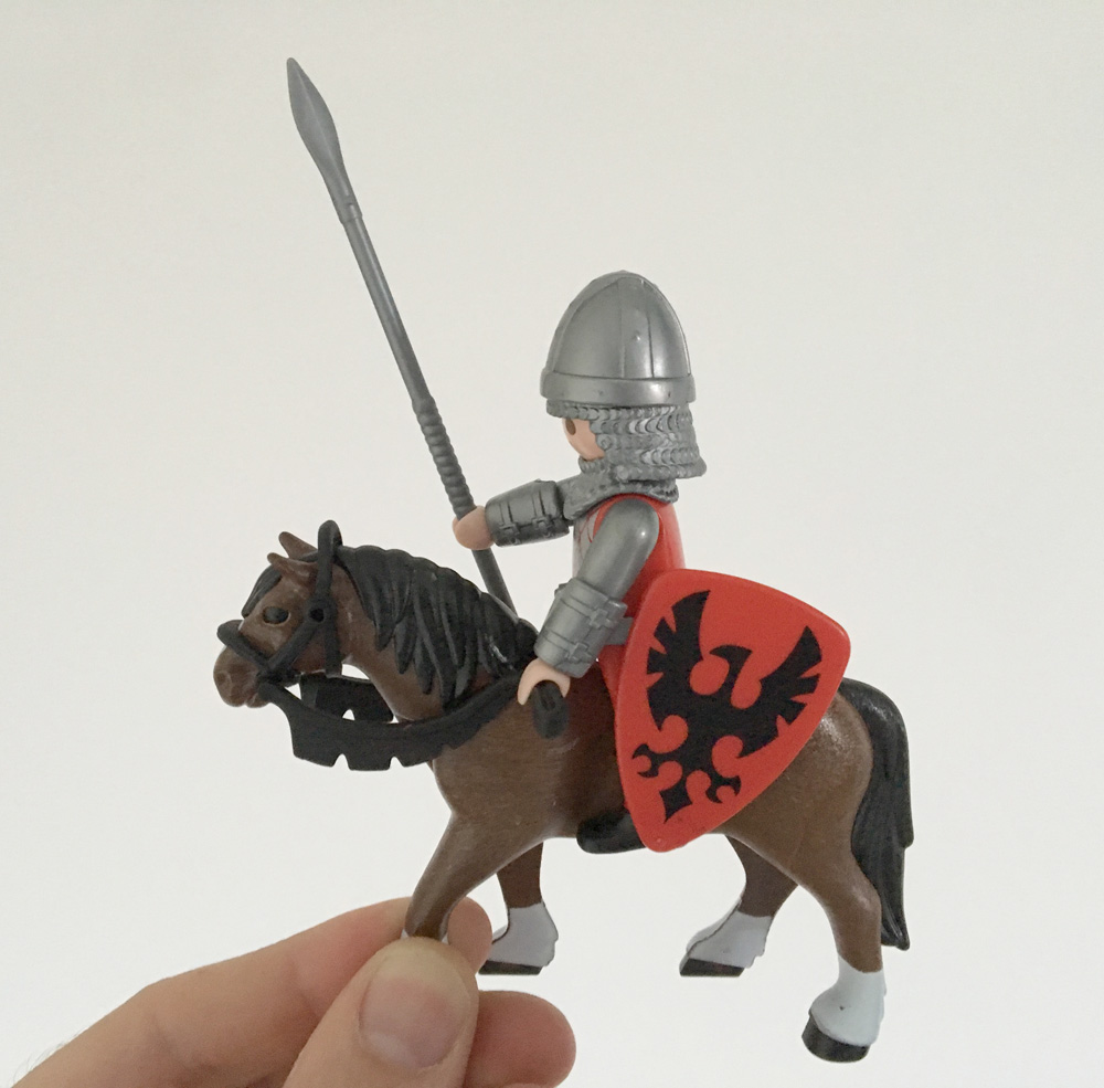 Ganz 100%ig bin ich mit dem Zug noch nicht zufrieden, ich würde bei manchen Nibelungen gerne die Schilder auf den Rücken montieren, oder so anbringen, dass sie seitlich am Sattel hängen (was nicht leicht ist, da die Ritter gar nicht auf Satteln sondern direkt auf dem Pferderücken sitzen), aber da ist mir die Patentlösung bis jetzt noch nicht über den Weg gelaufen
