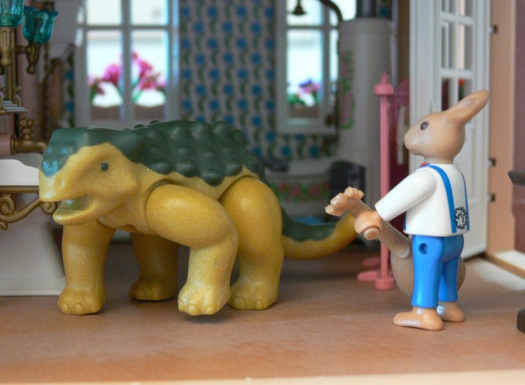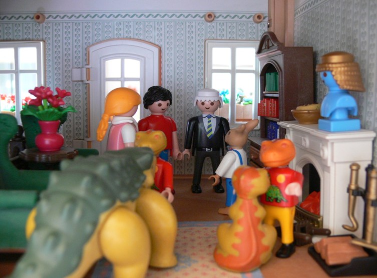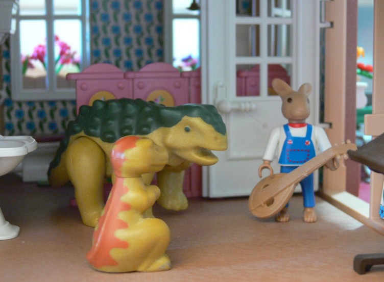 Gutmütig lassen die Dinos von den Eiern ab. Wenn sie so freundlich gebeten werden...