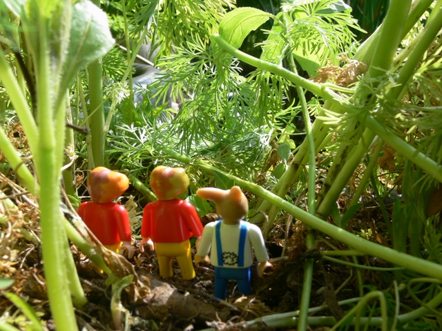 So machen sich Knuffel und Töffel auf den Weg zum See. Möhrchen schließt sich ihnen an, damit sie keine Dummheiten machen oder wenigstens nicht ohne ihn.