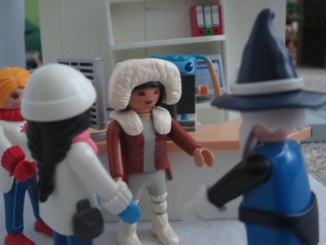 Der Hüter zögert noch und blickt fragend seine Assistentin Kiki an”Was meinst du? Sollen wir sie Professor Genies nachschicken? Eigentlich sind sie ja nicht die erhofften Agenten, die ich bei der OfM angefordert hatte.”