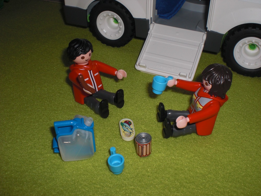 Und so krabbeln die drei durch die Seitentür in das Fahrzeug.