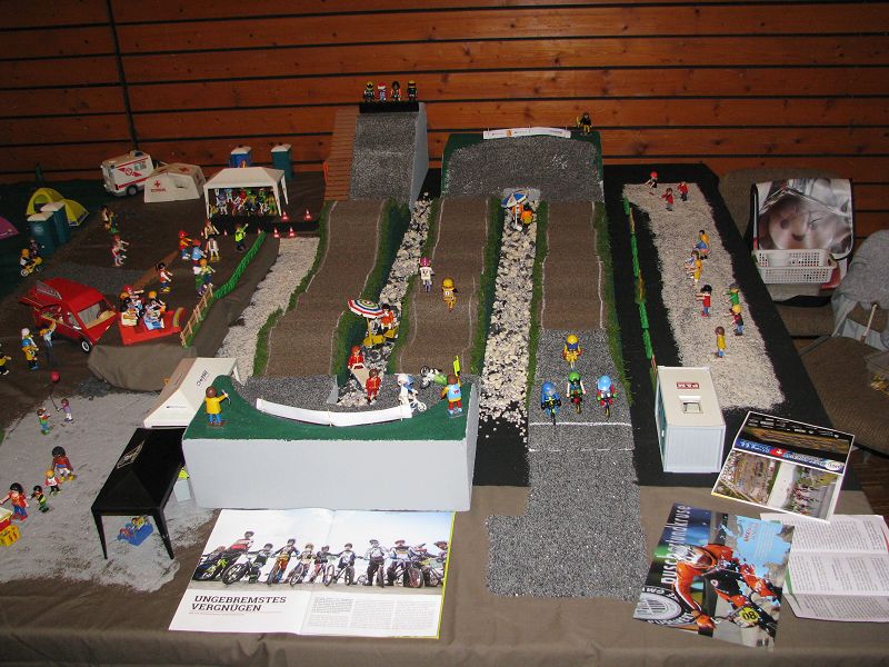 Und da hatte er den Einfall eine BMX-Bahn nachzubauen. Da der Sport nicht unbedingt jedem geläufig ist, haben wir noch etwas Lektüre dabeigelegt.