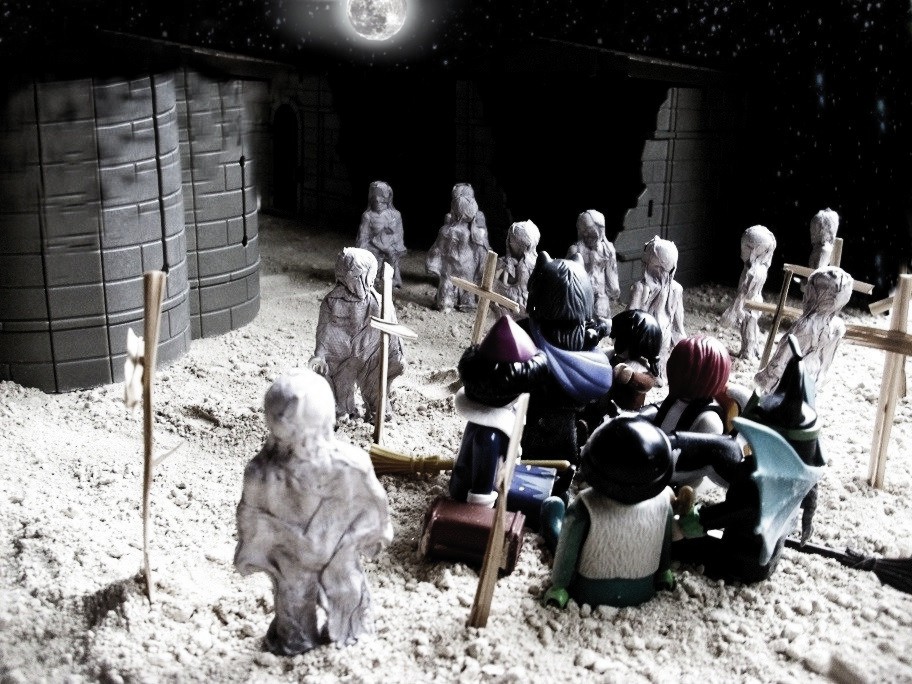 Dämonia aber warnte, das dies kein Ort wäre, an dem man sich aufhalten sollte und das wir deshalb außerhalb übernachten sollten, in der Hoffnung, das uns der Ort bei Sonnenaufgang wieder freigeben würde. So kamen wir auf den Friedhof. Emely lächelte mir zu. „Es sind die Lebenden vor denen man sich fürchten muss. Die Toten tuen einem nichts mehr.“ Damit hatte sie sicher Recht – zumindest hätte sie auf jedem anderen Friedhof der Welt recht gehabt.