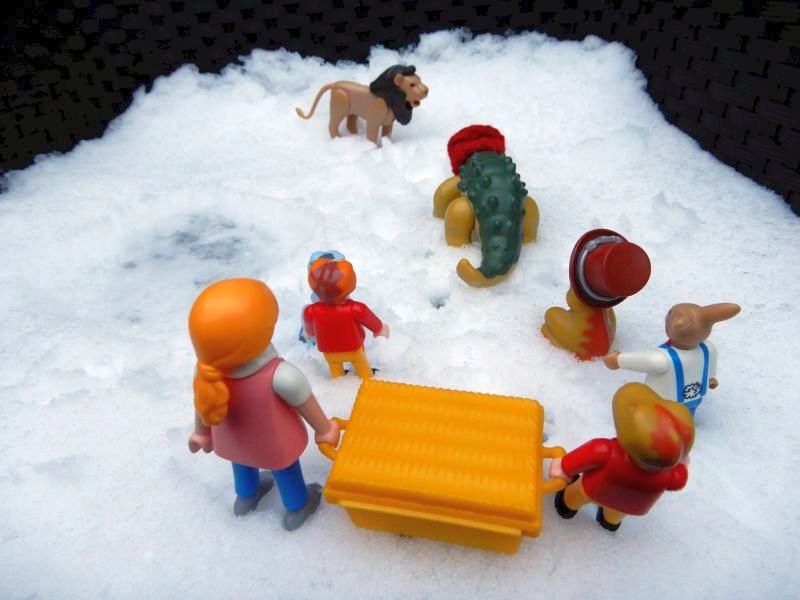 "Was macht denn ein Löwe hier in der Kälte?" flüstert Möhrchen.