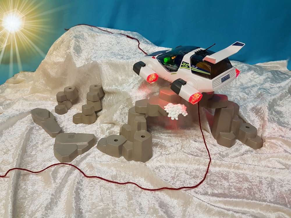 Ich bin mir zwar nicht sicher, ob das klug ist, aber da wir sonst keine Orientierungsmöglichkeiten haben, lasse ich mich überzeugen. Wir folgen also dem roten Faden durch die weiße Kälte. Hügel rauf und Hügel runter. Mann, ist das kalt hier! Auf einem besonders kalten Berggipfel beschließt Conrad schließlich, der Eiskugel eine Regenerationspause zu gönnen. Er legt die Kugel aufs Eis und beginnt mit seinen Messungen.