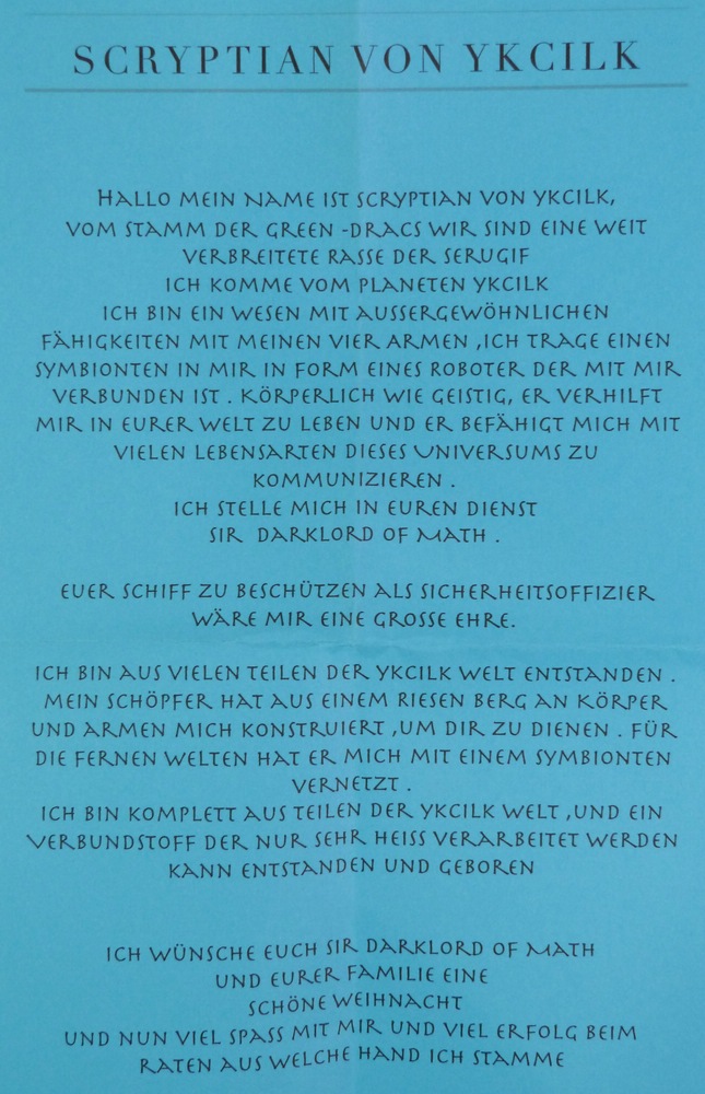 Ganz außertourlich und überraschend traf für mich, kurz vor dem Fest eine großer Umschlag ein.