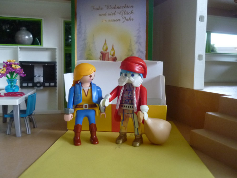 "Echt jetzt? Ich bekomme etwas vom Weihnachtsmann? Bisher war bei mir immer das Christkind für die Weihnachtsgeschenk-Lieferung zuständig. Ah! Das liegt bestimmt an der neuen Adresse. Die teilen sich die viele Arbeit so postleitzahlmäßig, oder?"