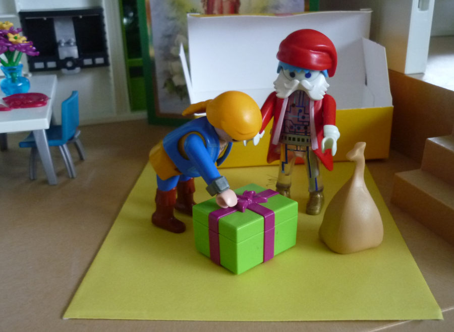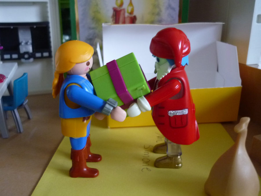 "Danke, danke liebe Knusper. Warte einen Moment. Ich habe dir natürlich ein Geschenk mitgebracht."