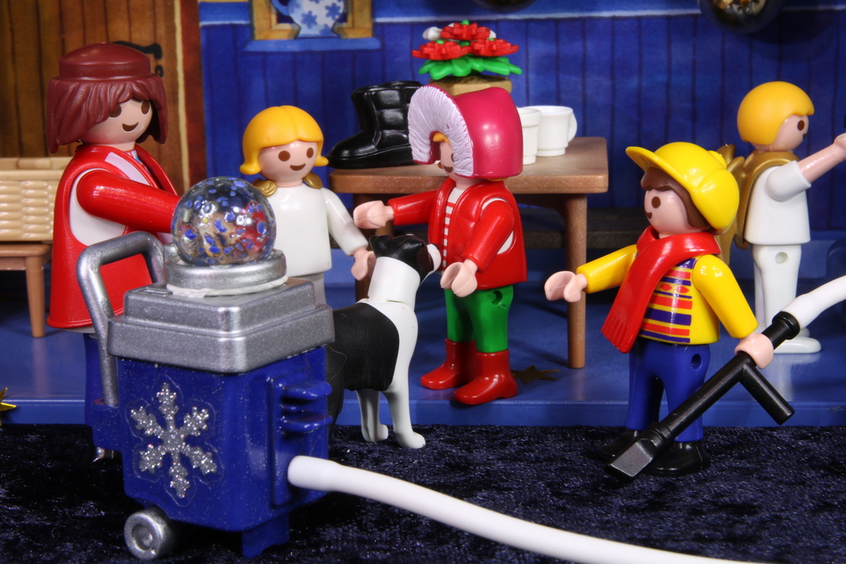"Und der Schnee?" fragt Charlotte. Julebukk hebt die Schneemaschine auf und gemeinsam betrachten sie die Kugeln, welche die gesammelte Menge anzeigt. "Ich glaube, es könnte reichen. Es wird schneien, noch heute Nacht! stellt Julebukk zufrieden fest.