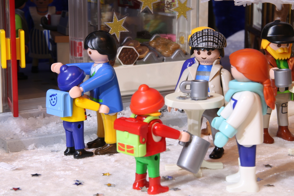 Doch als er die Konditorei betreten will, stößt er mit seinem Vater zusammen, der gerade eine Kanne frischen Punsch geholt hat. Das heiße Getränk ergießt sich über die Kleidung der beiden. "Hast du dir weh getan?" fragt der Vater besorgt. "Es tut mir leid, Ben." Der Junge schüttelt den Kopf. "Es tut mir leid auch leid, Papa! Alles!"
