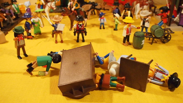 Es war Bob! Bob hatte gestern Geburtstag gehabt. Also hatte er es letzte Nacht richtig krachen lassen. Bis heute Morgen lief die Party im Saloon. Er hatte “viele Flaschen gesammelt”(natürlich alle mit Pfand) als ihn der Barkeeper rauswarf.