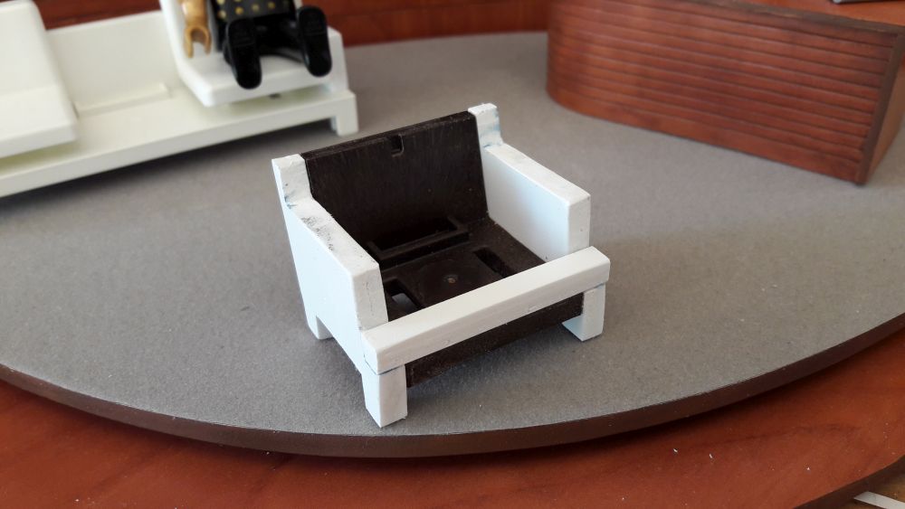 Die weißen Sitzkissen müssen noch etwas unterbaut werden, damit es passt.