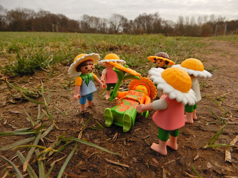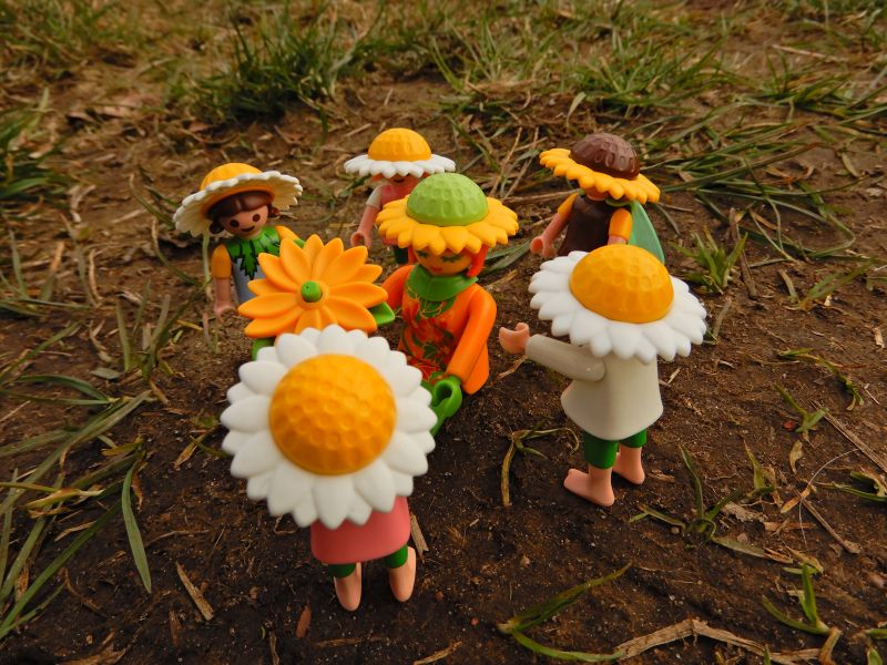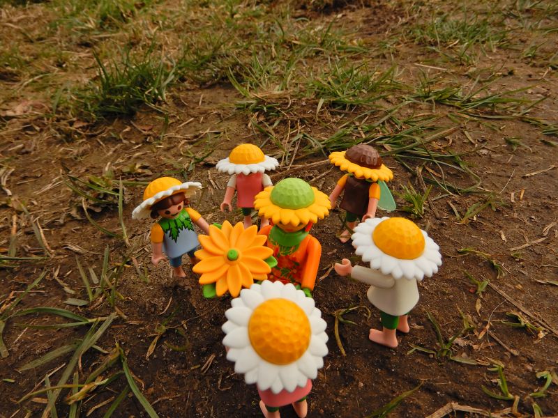 Schüchtern steht die Frühlingsfee inmitten der tanzenden Blumenkinder, die ausgelassen um sie herumtanzen.