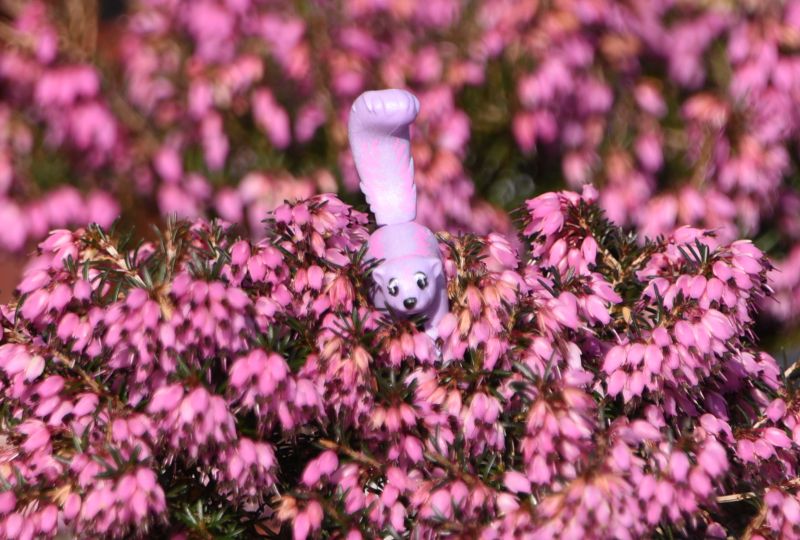 Für den Waschbär in türkis habe ich heute leider keine passenden Blumen gefunden - vielleicht blühen solche Farben später.