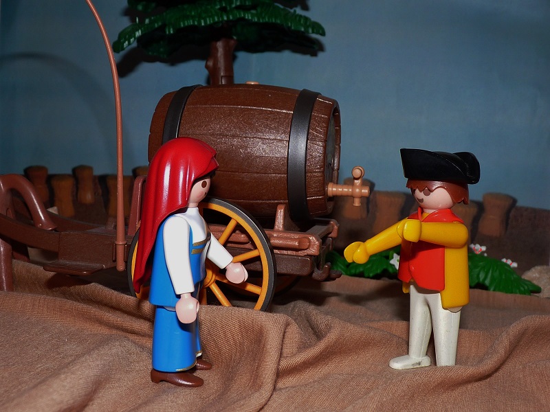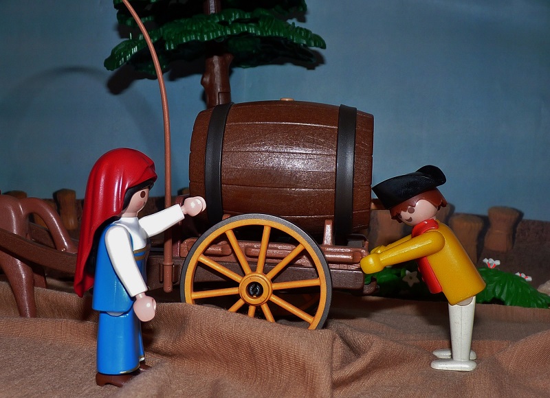 „Gerne“, antwortete der Fuhrmann, „aber ich habe kein Glas, worin ich dir den Wein geben könnte.“