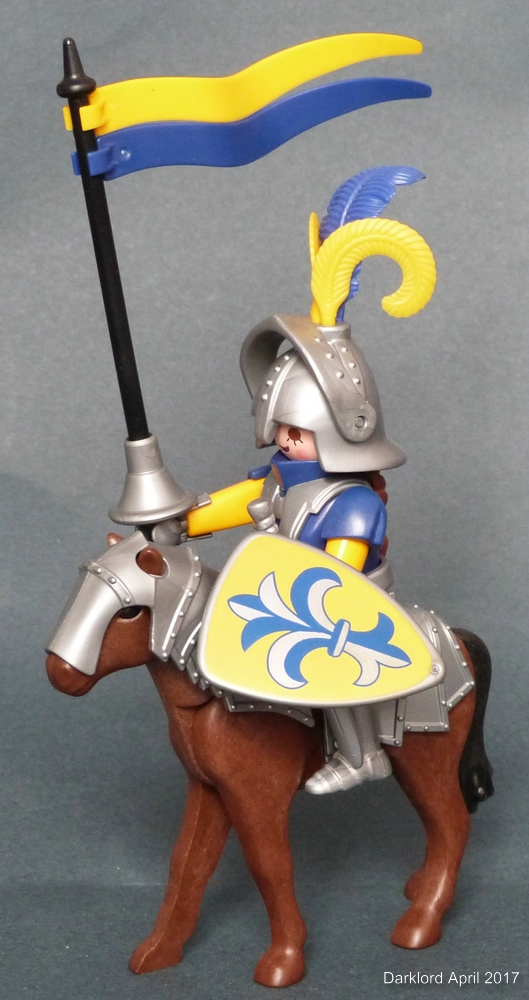 Bei dieser Figur ist das Pferd eine "Notlösung". Eigentlich möchte ich da ein Pferd mit Schabracke haben. In dem dunklen Blauton gibt es aber nur eine einzige, die ich dann massiv verändern müsste. Irgendwie sollte ja auf der Schabracke das Wappen wiederholt werden. Dazu müsste ich dann zwei der Wappenschilde opfern, von hinten ganz dünn schleifen und aufkleben.