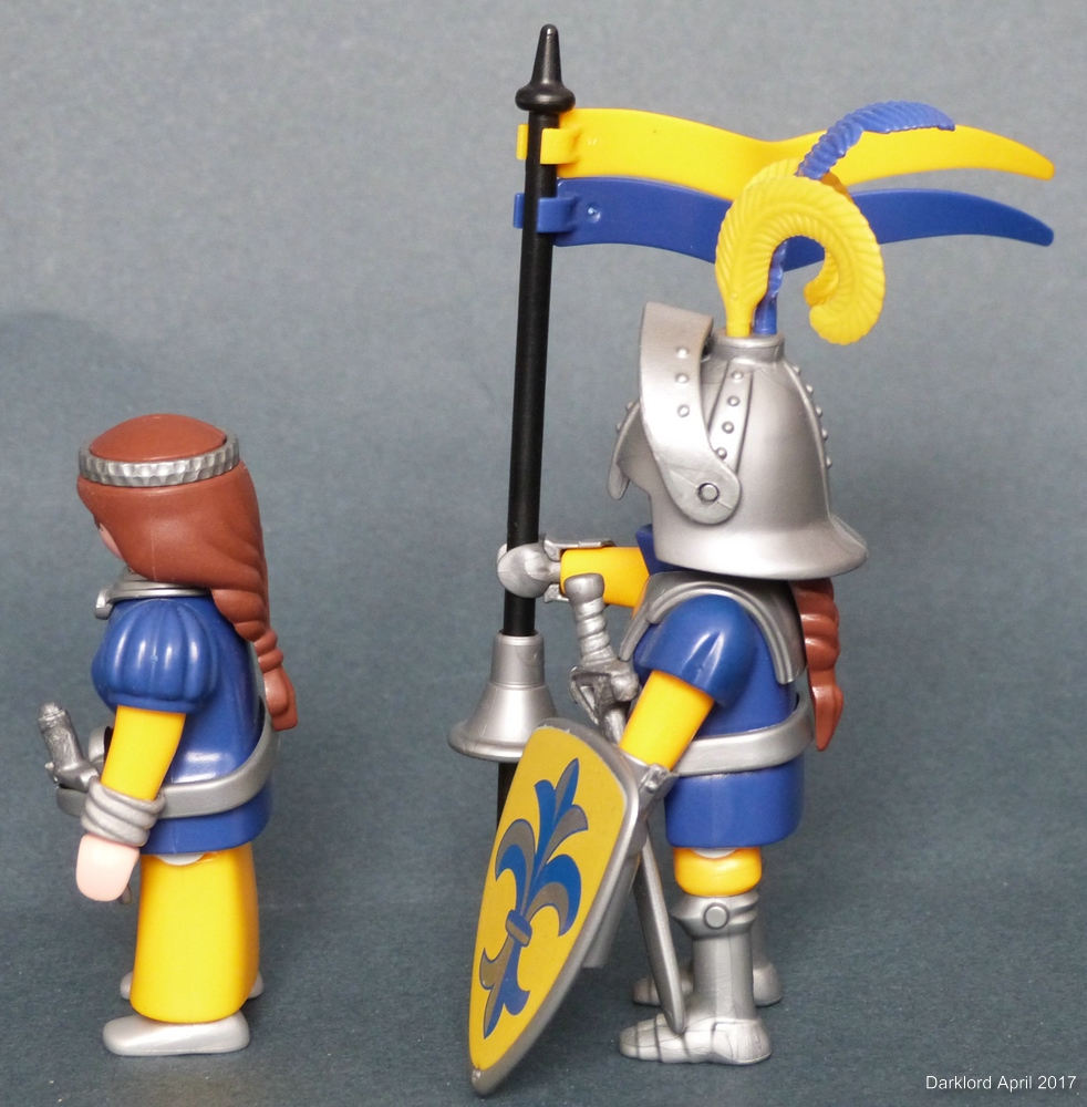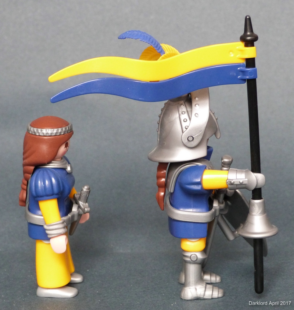 Für diese Figur habe ich eine gelbe Schabracke im Kopf - allerdings tritt da das gleiche Problem mit der Wiederholung des Wappens auf der Schabracke auf, wie das bei der vorherigen Kriegerin der Fall war. Bevor ich da allerdings großen Aufwand betreibe, möchte ich erst einmal schauen, wie euch die Figur gefällt. Mich stört auch ein wenig, dass sie den exakt gleichen Helm wie die erste Version trägt. :gruebel Andererseits finde ich den "Nachbau" der Wappen-Lilie mit den Federn total schön. :gruebel Allerdings gibt es keinen anderen Helm mit drei Löchern für die Federn. Was meint ihr?
