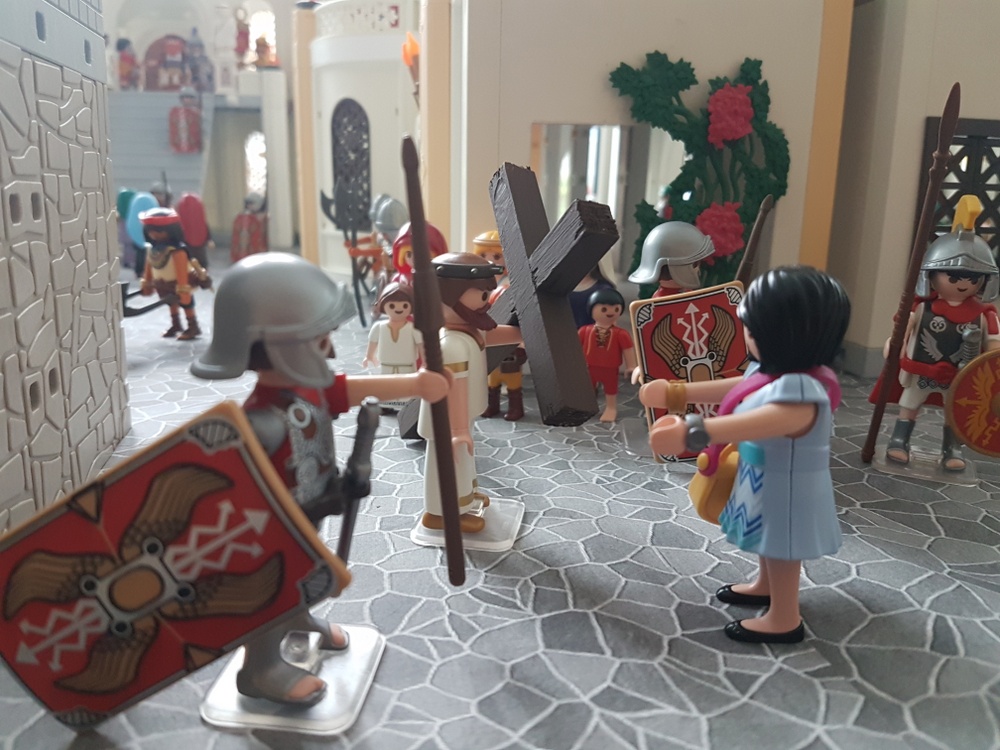 Jetzt stehe ich hier vor dem Prätorium mitten in einer tobenden Menge. Die gleichen Leute, die vor ein paar Tagen noch "Hosianna" gejubelt haben, schreien jetzt "Kreuzige ihn!" und "Freiheit für Barrabas!" Ich komme mir vor wie bei Pegida. Schlimm, dass sich Leute so schnell aufhetzten lassen!