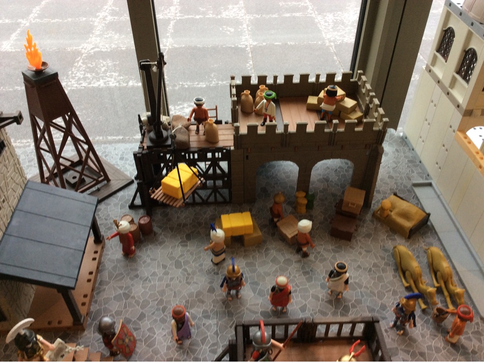 Anfangs war ich zögerlich, ob es mir gefallen wird. Ich stehe eigentlich nicht auf die System-X-Schlösser (habe auch keine) und konnte mir das nicht gut vorstellen. Jetzt zeigt sich, dass gerade diese Bauten ein schönes orientalisches Flair ergeben, schon wegen der runden Kuppeln. Besonders gelungen finde ich auch das viele Weiß. Ich hatte im vergangenen Jahr für das "Wimmelreich" versucht, graue Wände elfenbeinfarbig zu lackieren und es nach dem ersten Haus aufgegeben...