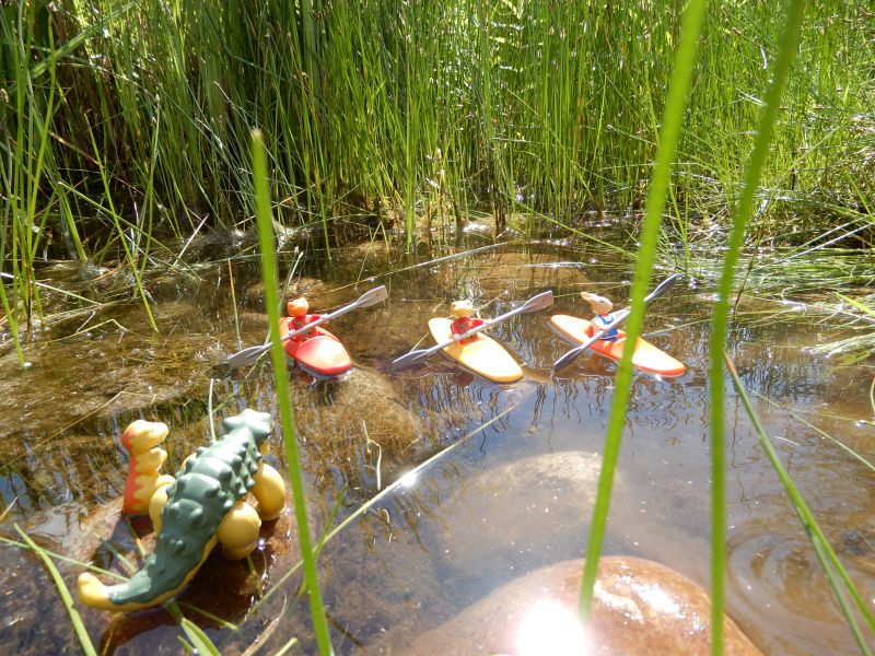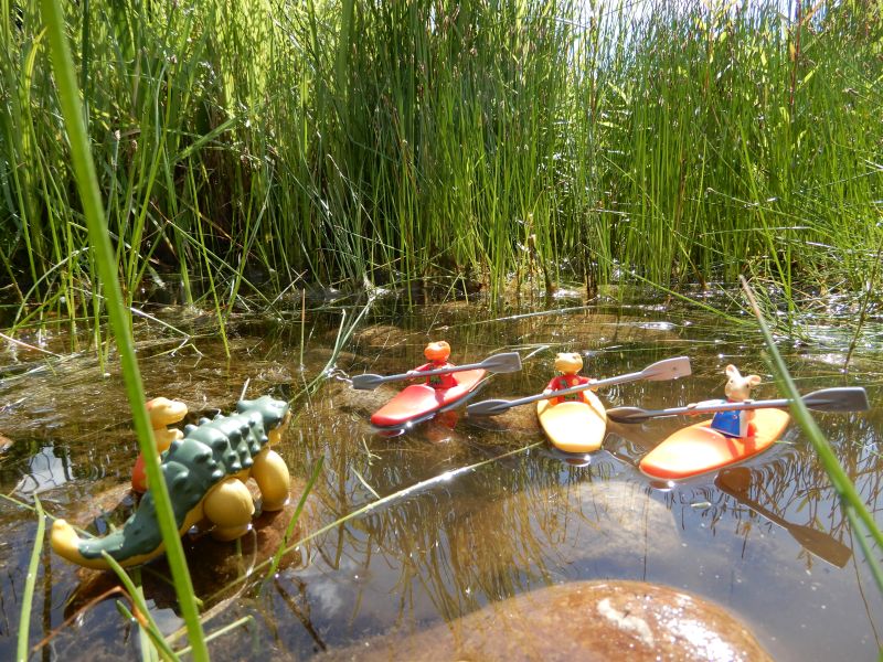 „Wollt ihr die Boote mal ausprobieren? Meine Jungs sind noch nicht da, das dauert auch noch eine Weile, bis sie kommen“, schlägt der nette Mann vor, als er sieht, wie zumindest einige der Dinos die Boote sehnsüchtig betrachten.