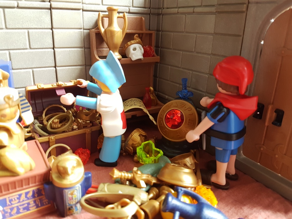 Der Raum, in den der Wirt Jörg jetzt führte, war bis oben gefüllt mit Gold, Waffen und Schätzen aller Art, so dass Jörg aus dem Staunen und Wundern gar nicht mehr herauskam.