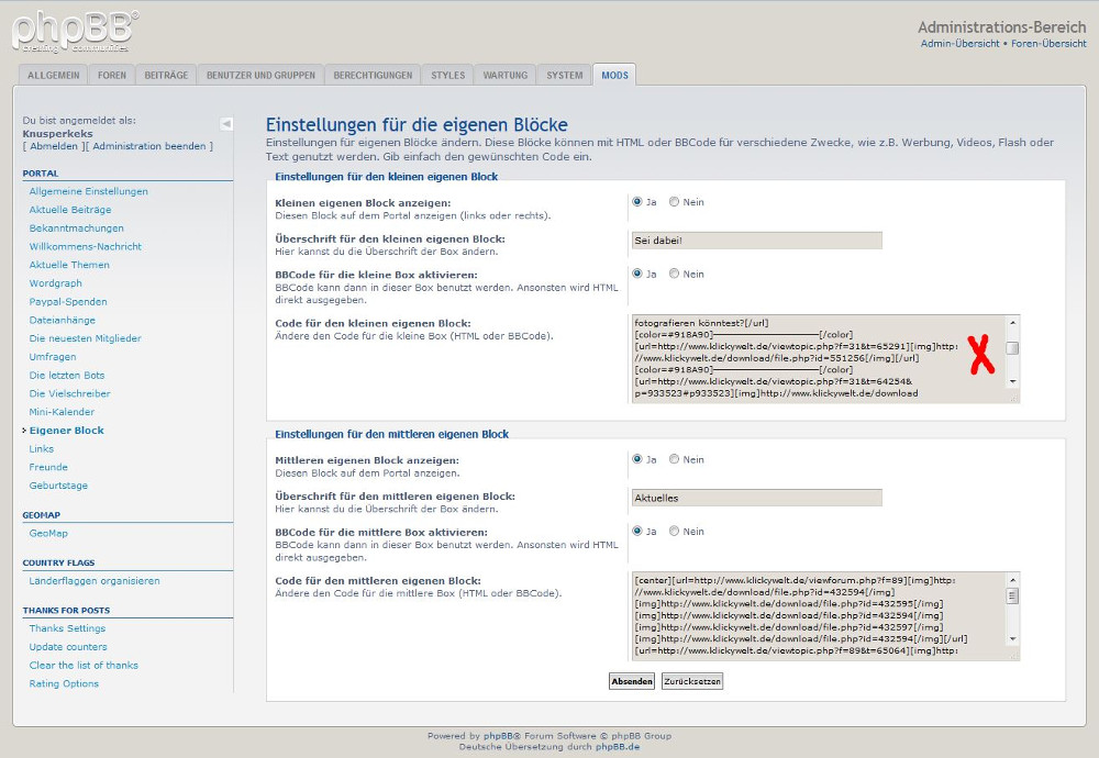 Bennain, der das neue Forum (die Klickywelt) eröffnen wollte,