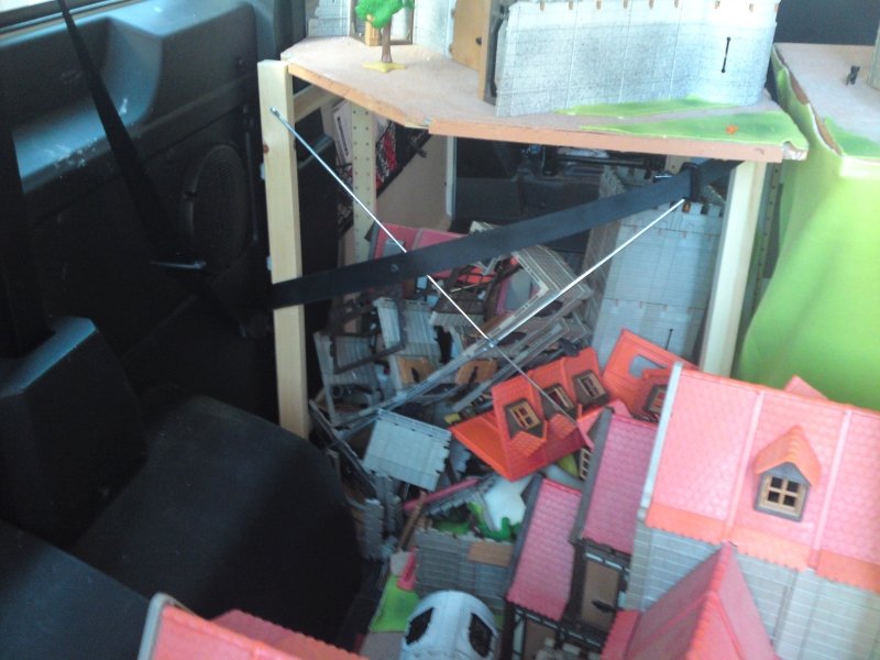 Na ja, ist ja nix Großartiges passiert. Wären das Gebäude einer Modelleisenbahn (Faller, Vollmer, Kibri), wären die weniger leicht zu reparieren, also gut, dass wir auf Playmobil stehen!
