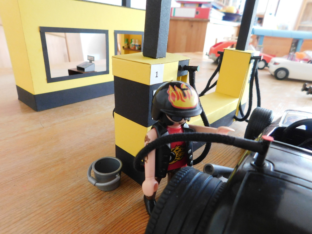 Sehr schönes Bauwerk! Wirklich toll was du aus Pappe machst. Gut auch, dass es bei deiner Tankstelle einen Shop gibt. Bei playmobil weiß man ja gar nicht, wo man bezahlen soll. Ich habe die Esso Tankstelle. Leider ist da der Lack ab. Das meine ich im wahrsten Sinne des Wortes :D