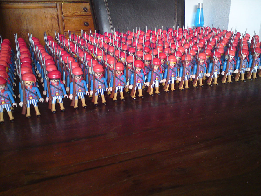 Es ist halt wirklich sauschwer, bei einer eher uniformierten Playmo - Einheit (gerade in deiner Größe) den Männchen eine gewisse Individualität zu verleihen.