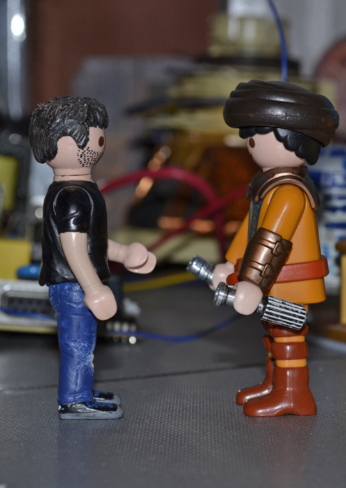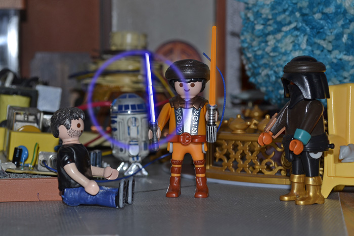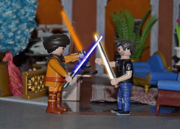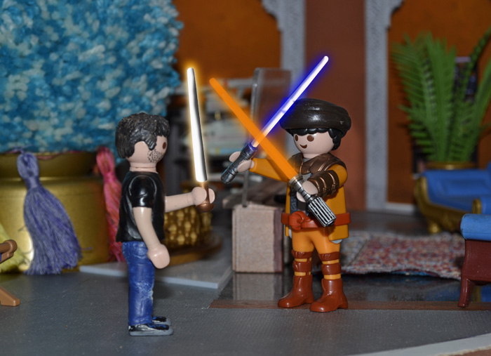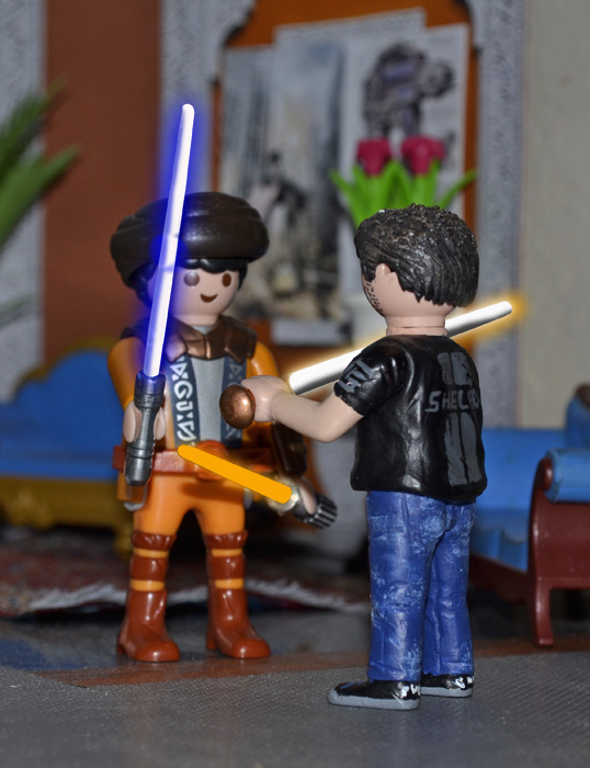 "Deine Frau? Was hat sie mit den Laserschwertern zu tun?"