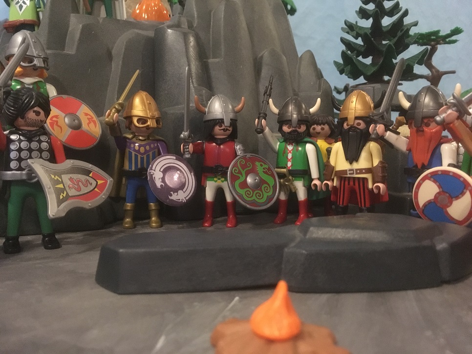 Die Feuer prasseln und lange wird beraten. Um Zustimmung zu bekunden werden immer wieder Schwerter oder Äxte an Schilde geschlagen.