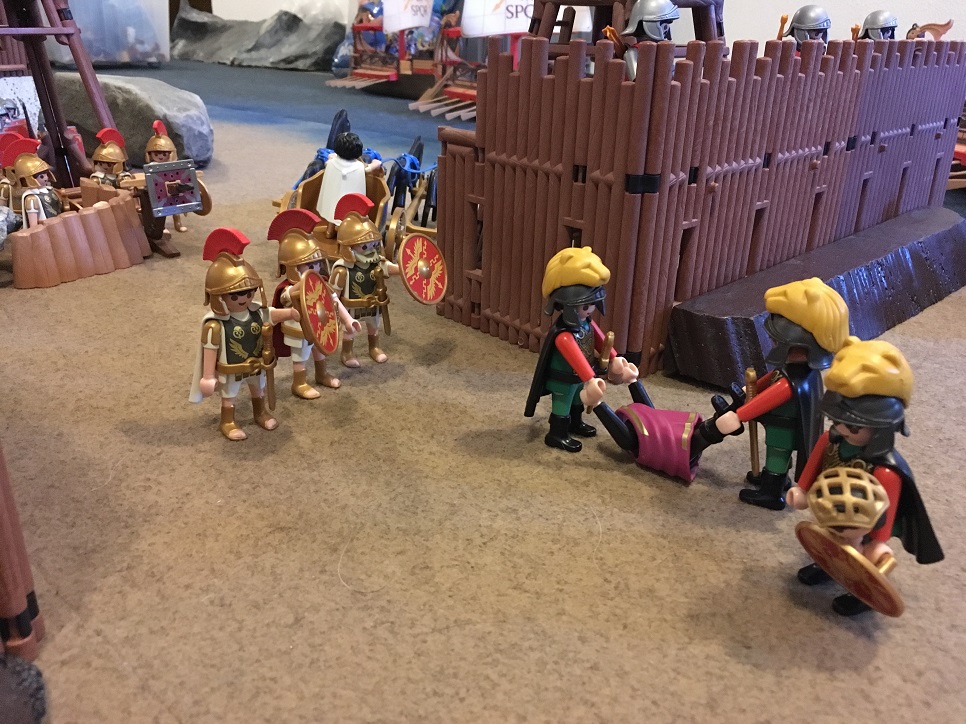 ...auch der Sohn des Stammesoberhauptes, der in Rom zur Schule gehen durfte versucht sich einzumischen. Doch ein letzter Versuch des Quastors, mit einer Drohung den Stammesrat zu bewegen, doch die Abgaben zu leisten...
