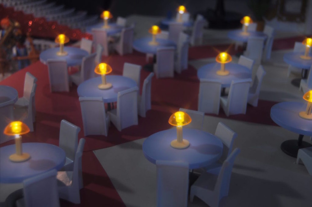 Die Sitzplätze mit stimmungsvoller Beleuchtung.