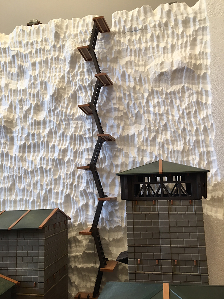 Stellst du den Durchmarsch durch die zerstörte Mauer da? In Verbindung mit rumliegenden Eis- und Mauerteilen müsste es reichen. Figuren für hinter der Mauer brauchst du ja nicht viele.