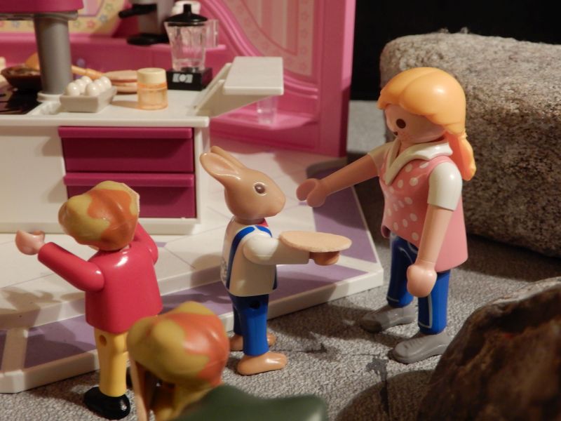 „Möchtest du noch einen Eierkuchen?“ fragt Trüffel. „Flatterfee hat gestern ganz viele gebacken, da haben sogar wir nicht alle geschafft! Ich hole dir einen!“