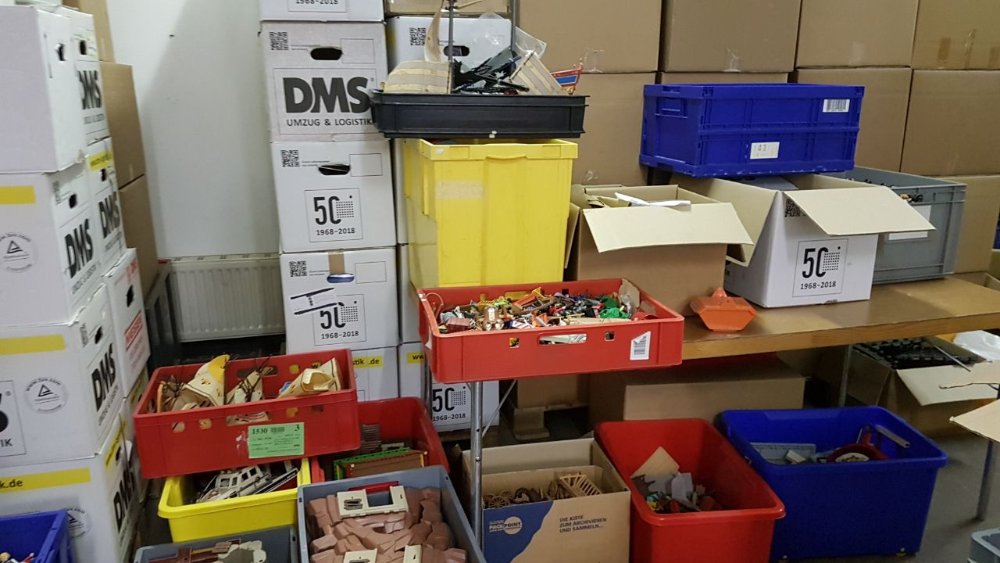 Es gibt MASSEN - und ich meine MASSSSSSSEN an Burg- und Mittelalterteilen. Dazu MASSEN an Figuren und Pflanzen. Und überhaupt von allem einfach viel... ich freue mich, morgen dann auch richtig in die Kisten zu schauen und sie nicht nur durch die Gegend zu tragen und auf und ab zu stapeln ... etwas frustrierend aber trotzdem schön sooo nah an so viel Playmobil zu sein. :bussi