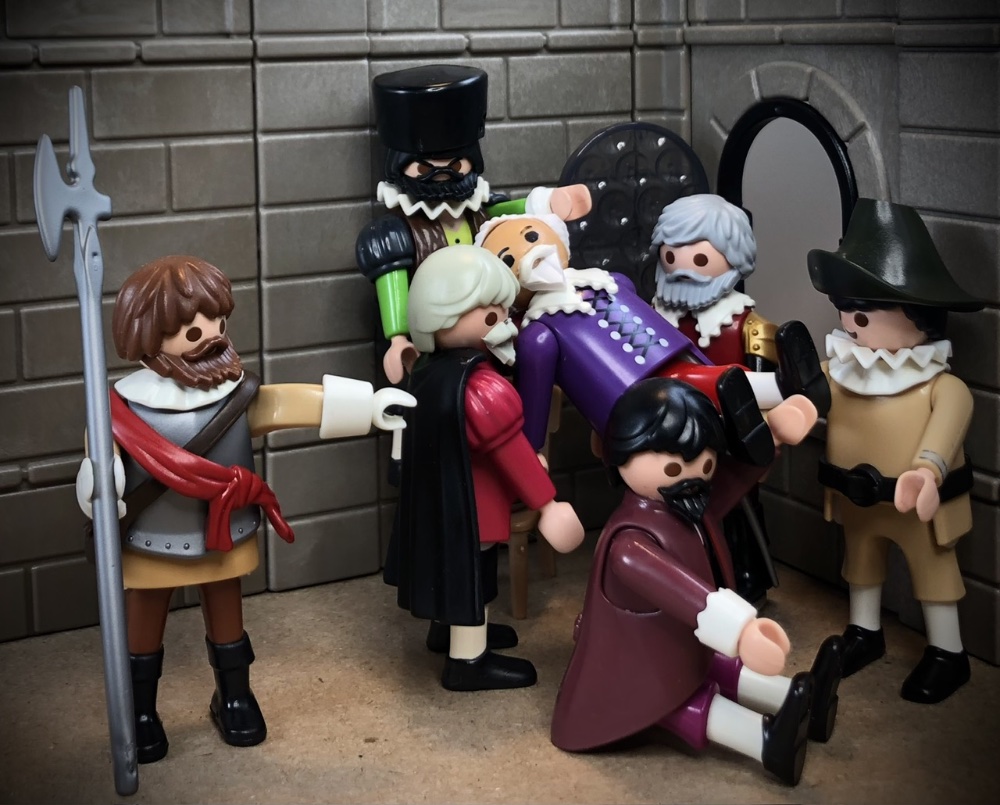 Falls historisch gemeint: ich habe mich von Bildern wie diesen inspirieren lassen, wo auch eine Halskrause über der Rüstung getragen wird: