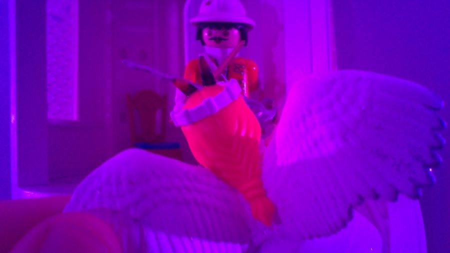 Allerdings war die Jagd noch nicht beendet. Das Bengerl hatte sich wieder mal in einen unstillbaren und unbegründeten Rachewahn versetzt und trieb den König durch die Räume des Schlosses, welches sie vorher noch so einträchtig zusammen gebaut hatten.
