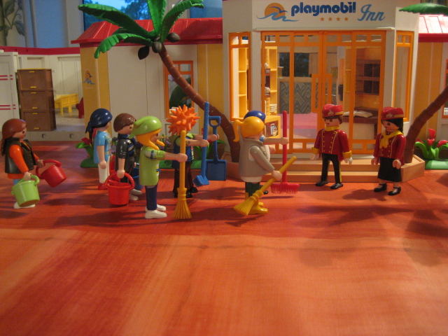 "Die Putzkolonne ist bereits da", beruhigt uns die Rezeptionistin. "Ich kann Ihnen die Zimmer zeigen und Sie können Ihr Gepäck hierlassen. Bis heute abend sind wir fertig. Warum verbringen Sie den Tag nicht am Strand?"