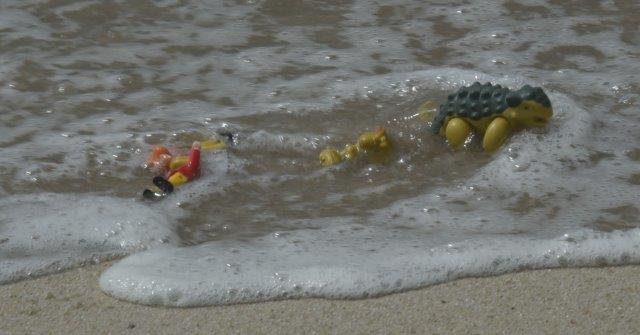 Urlaub? Was soll das sein? Aber Meer klingt gut, die Dinos baden gerne.