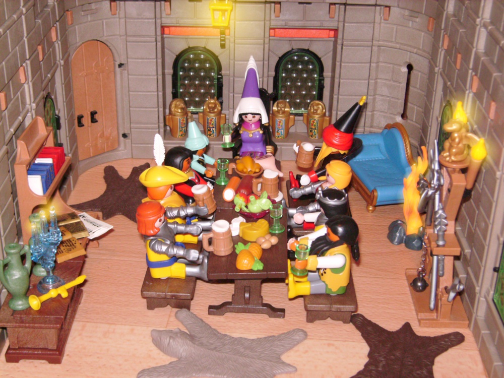 Maga Raila führte ihre Gäste in den Großen Saal, in dem sich auch die Bibliothek befand. Da es Zeit zum Mittagessen war, erwartete Petronella und ihre Begleiter erst einmal eine warme Mahlzeit, zusammen mit den wenigen Zauberern, die sich gerade im Turm aufhielten. Durch das gute Essen und die angeregten Gespräche am Tisch hatte Petronella die merkwürdige Bemerkung der Maga schnell wieder vergessen.