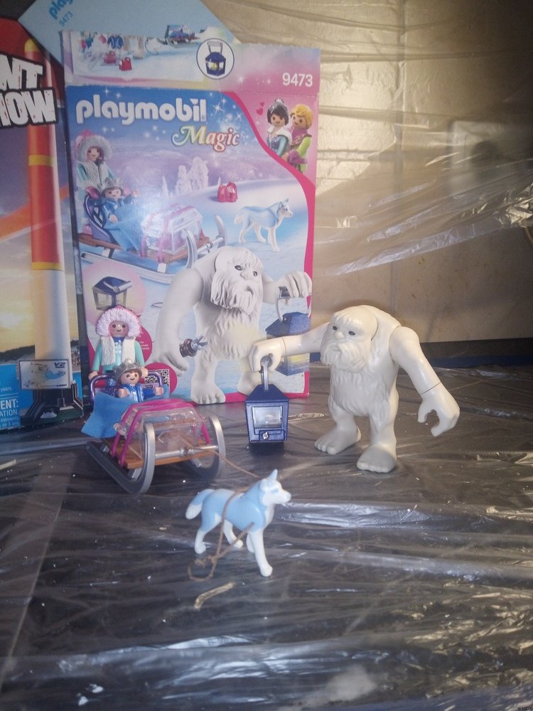 Preis: 2€ Bei dem Set 9473 Playmobil Magic - Schneetroll mit Schlitten habe ich zwar Anleitung und Karton, aber es fehlen die rosa Handschuhe, die beiden Kristalle und die "Schlaufe" für die Hundeleine.