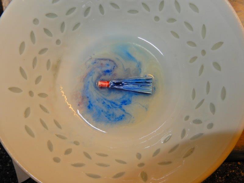 Beim Einlegen in Orangenöl fließt sofort Farbe weg: