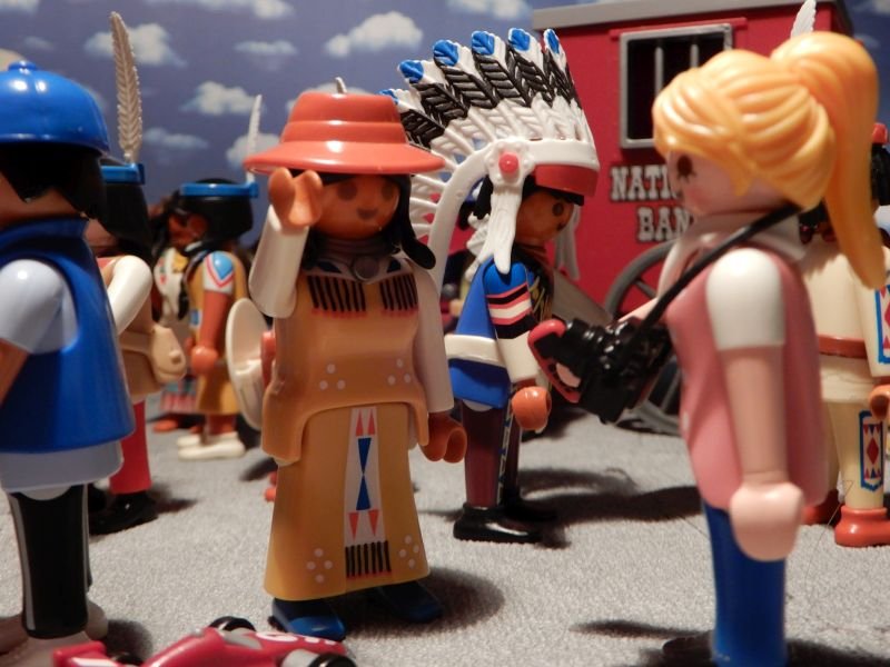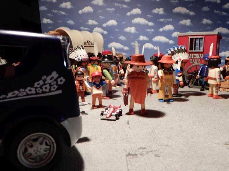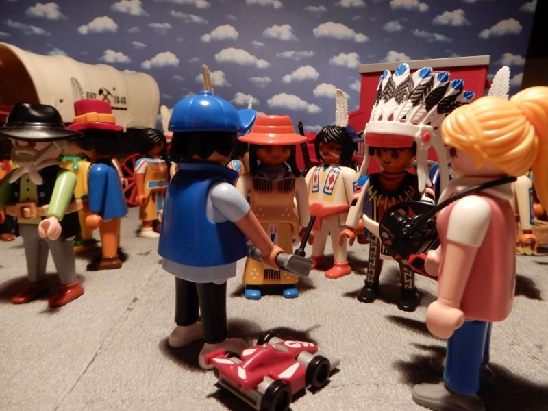 „Ich frag dort mal“, meint Hans entschlossen und geht zu dem Indianer mit dem prächtigsten Federschmuck.