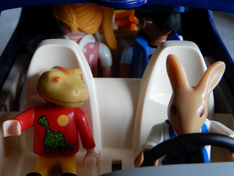 Entschlossen nimmt Möhrchen auf dem Fahrersitz Platz und fährt los.