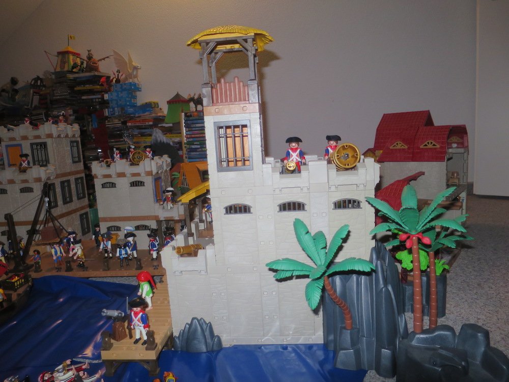 kurz bevor ich alles wieder wegräume, wollte ich mal eben meine Sodatenfestung zeigen. Ich habe die Teile von meinem Bruder übernommen und wusste nicht, dass es soviel werden wird. Da ich Aufräumen muss, konnte ich leider nur einen Teil der Blauröcke und Piraten aufstellen.