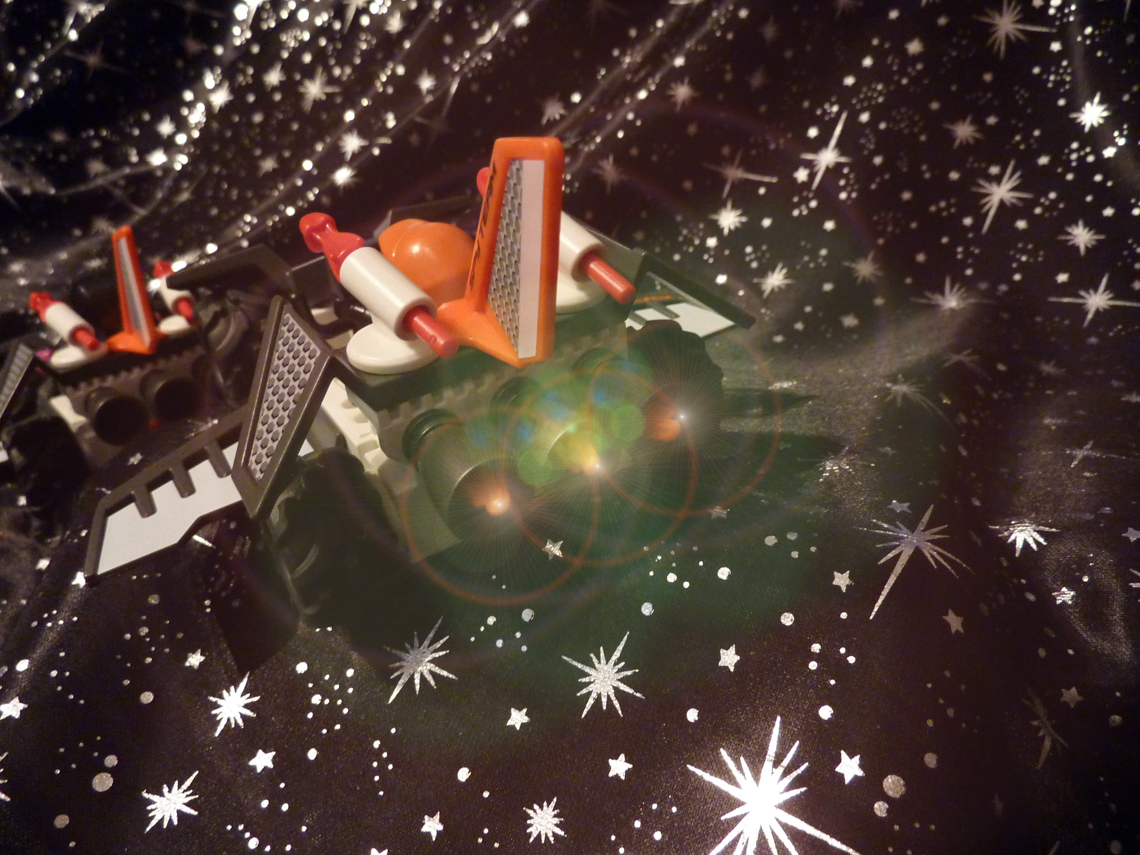 auf dem Geobra versucht Kohle zu machen, äh, auf dem die lieben, braven, bescheidenen E-Rangers versuchen mit KO-Leuchtkanonen, Lasern und Raketenwerfern die Darksters aus dem All zu blasen, äh Blümchen zu züchten,