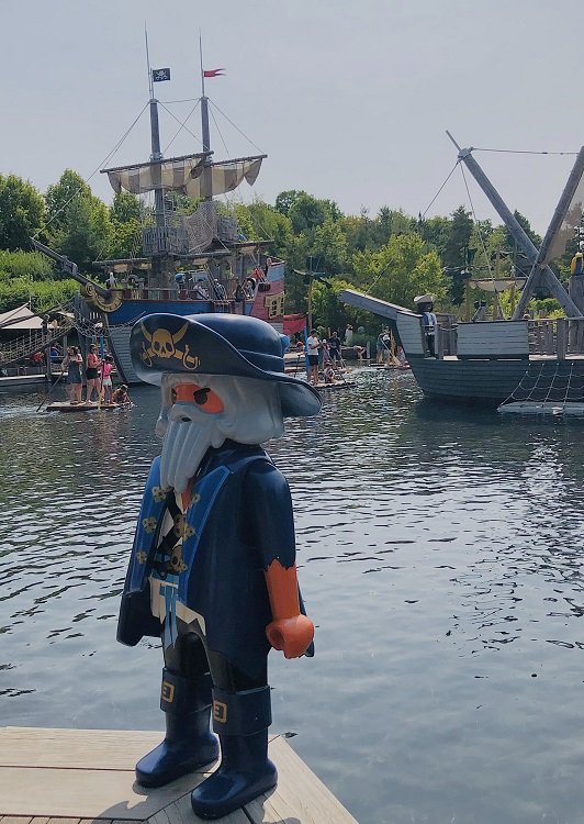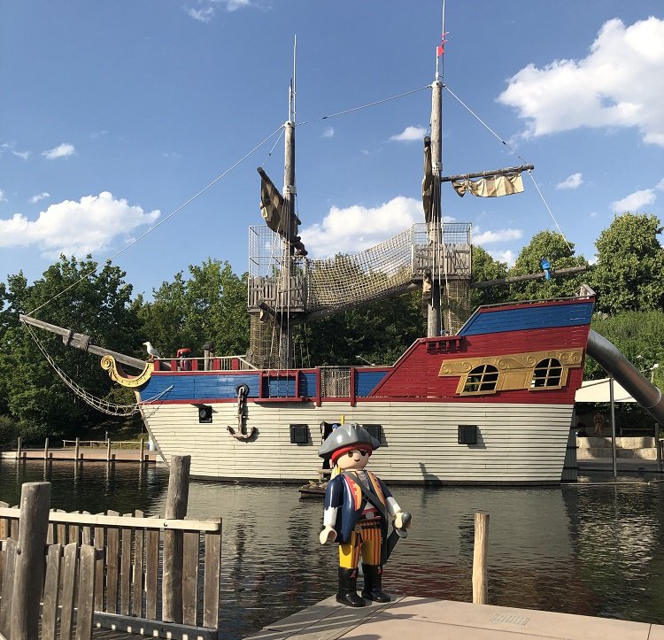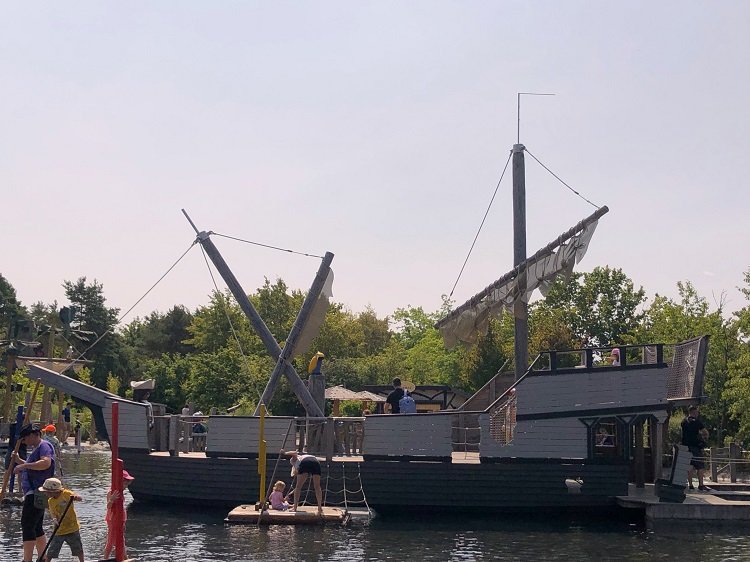 Doch das hielt sie nicht davon ab die Piratenwelt näher zu erkunden. Hier grüßte ein Pirat und dort noch einer. Fanny zeigte auf die Flöße, die mit Besuchern bemannt waren: „Was meinst du, sollen wir einen Ausflug mit einem Floß machen?“ „Lass uns doch das kleinere Schiff dort drüben entern.“, erwiderte Fredeswind. Vorsichtshalber zogen sie sich die Schuhe aus, man konnte ja nie wissen…